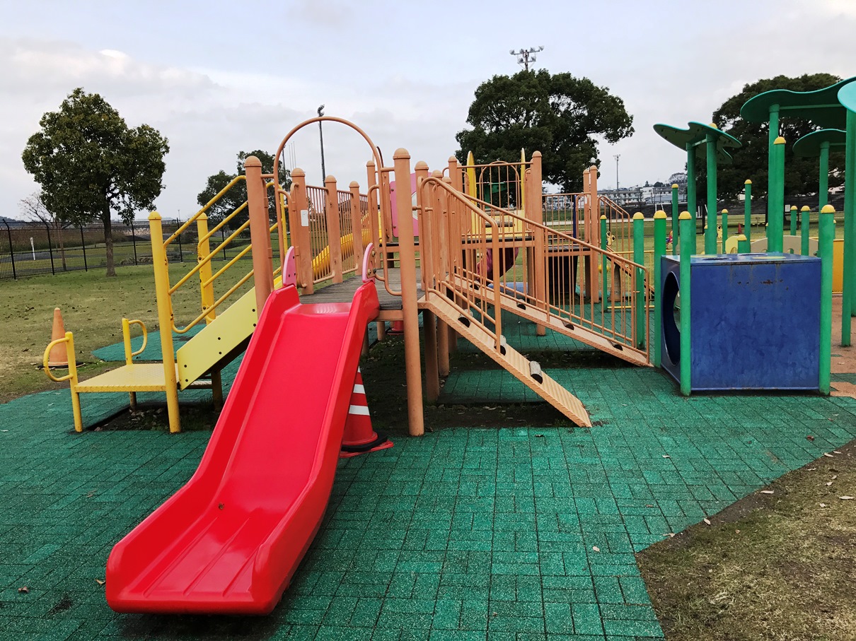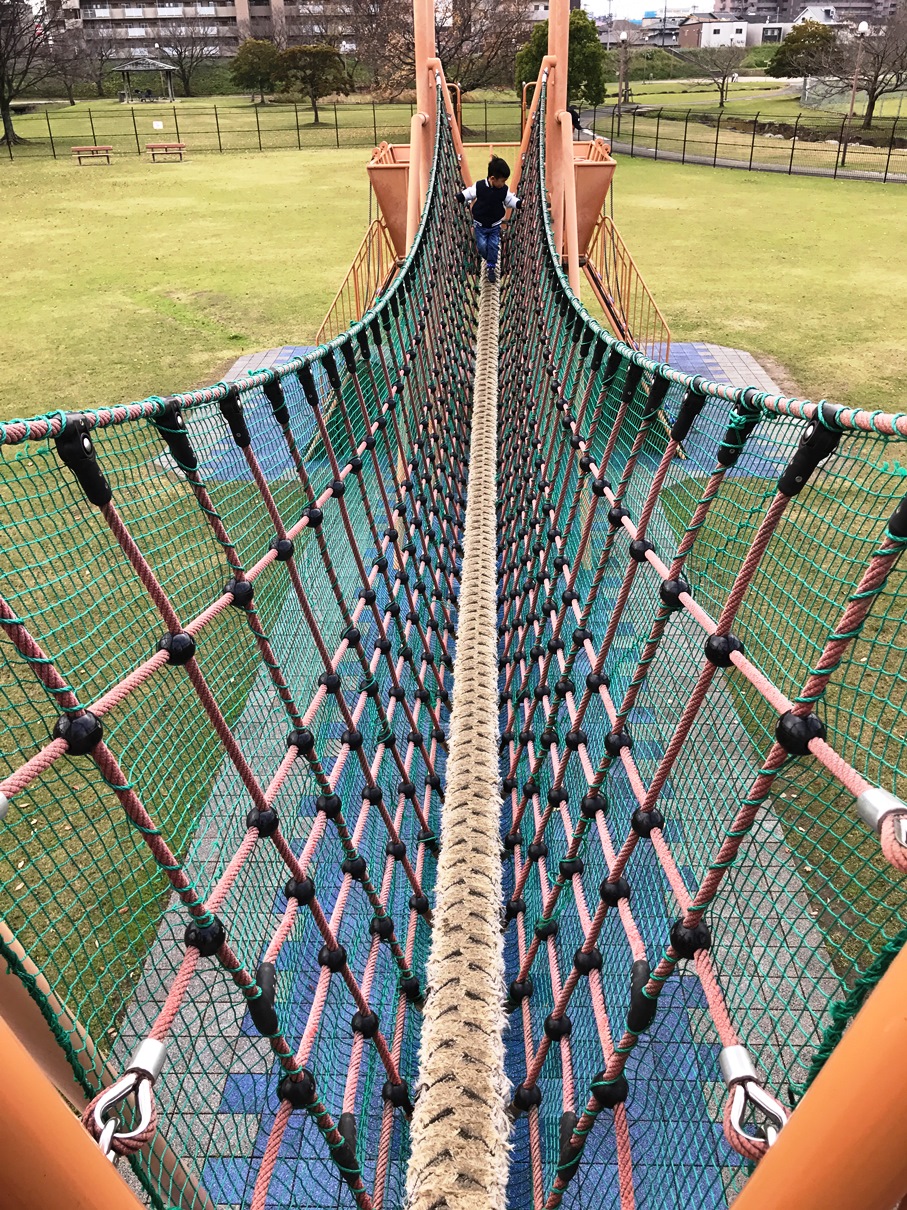 坪井川綠地公園位於日本熊本縣,公園佔地非常廣大,除了有超大型無料複合式探險遊樂設施外,亦有將近30公尺長的滾輪溜滑梯、5組以上滑梯、超過150種攀爬闖關設施、更有超大草地,而附近更有棒球場,網球場及多用途休憩用地等。